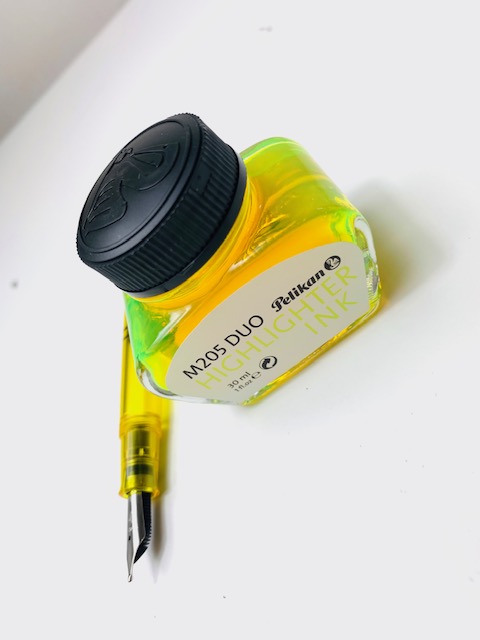 高い人気を誇る「デモンストレーター」シリーズ。当初は万年筆の内部構造を説明するために作られたものですが、現在ではペリカンの代表的なモデルの一つとなっています。今回の特徴は、そのペン先。字幅はなんと、極太字のBBのみを採用。付属の蛍光イエロー、ハイライターインクと太字ペン先の組み合わせで、蛍光マーカーのような使い方ができるという、ちょっと個性的なデモンストレーターです。